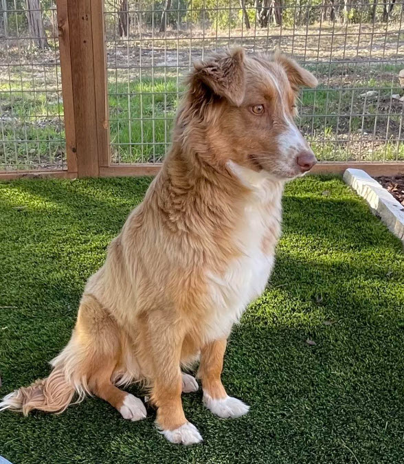 Daisy Mae is a beautiful 2 year old red tri female (with a full tail) and weighs 40lbs. She was abandoned by her owners and ended up at the shelter. She hit the jackpot when she became a STAR dog. She will be spayed, vetted and evaluated in the Houston area and should be ready at the end of March.