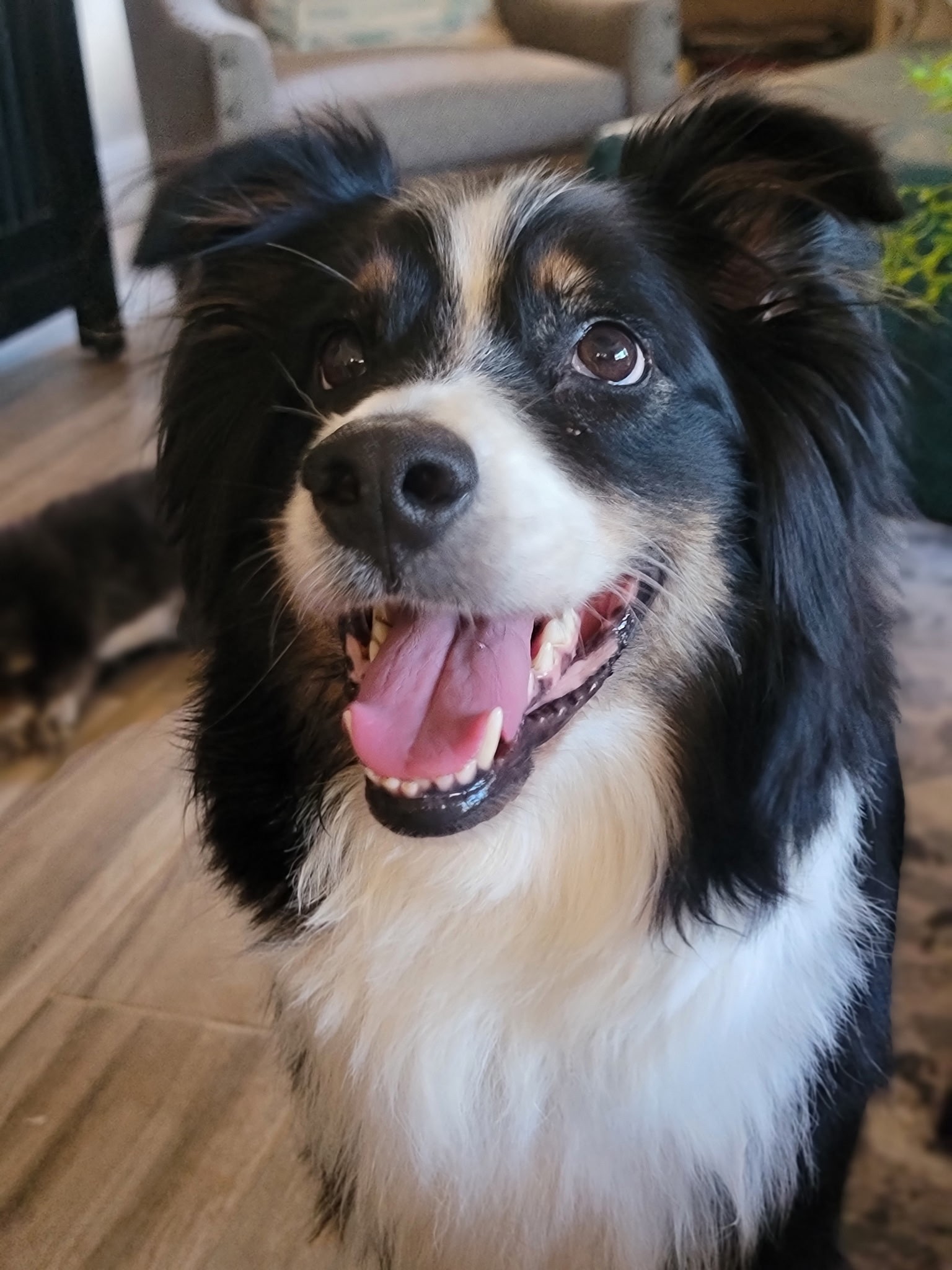 Indie currently lives with both a male and female Aussie. She’s often the one starting the fun, but she also has a soft, snuggly side, content to curl up at your feet or even climb into your lap for some love. She has been around cats and does well, though she’s a bit too curious about their food and litter box snacks, so some supervision and separation there is a must.