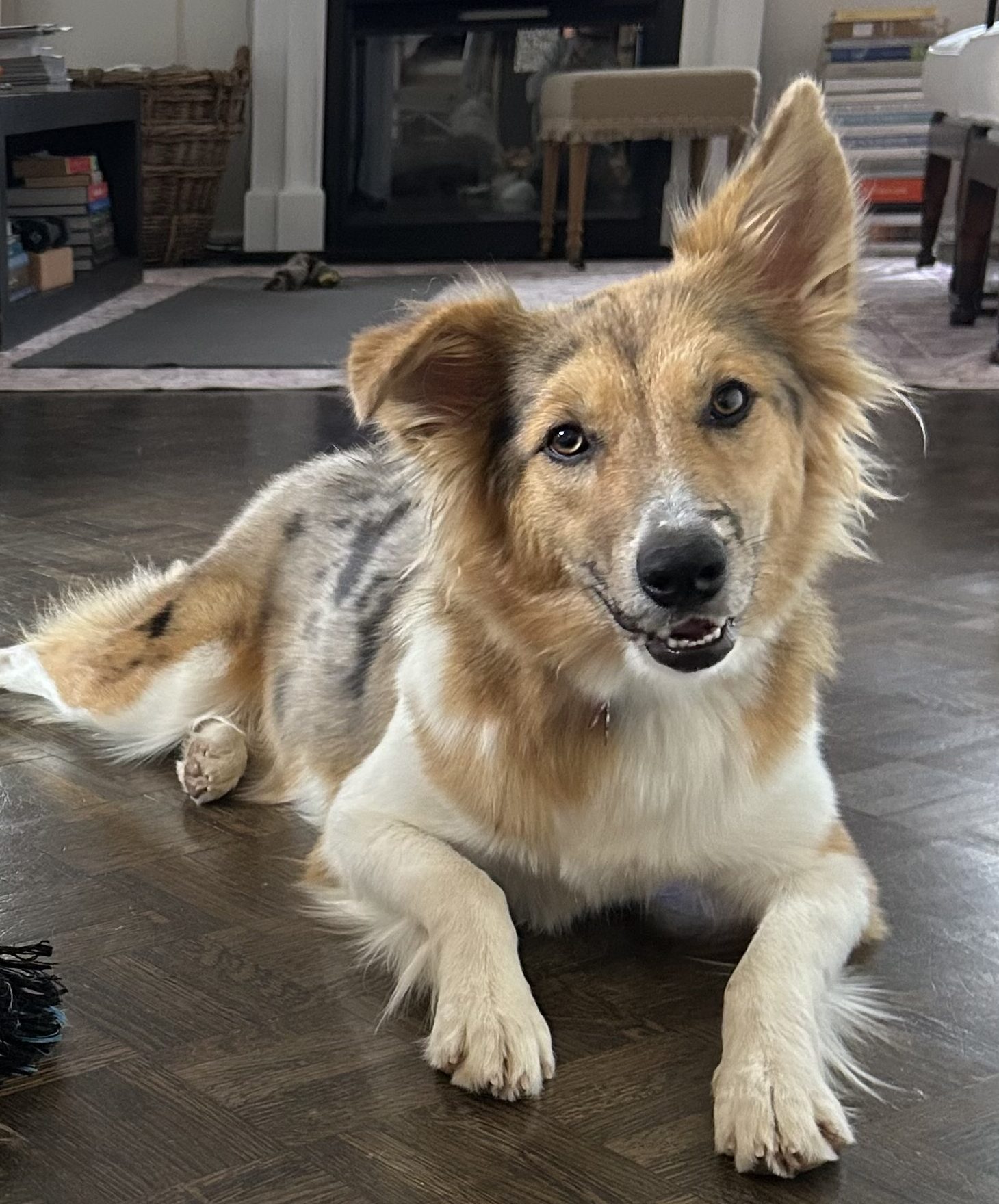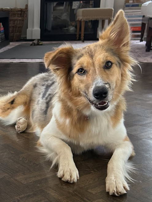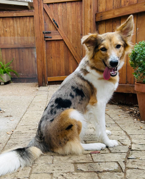 Lucy Lu is a fun-loving, energetic 1-yr-old blue merle female, weighing in at 43 pounds and glorious, fluffy tail. With her big personality and playful spirit, she brings joy and entertainment wherever she goes.