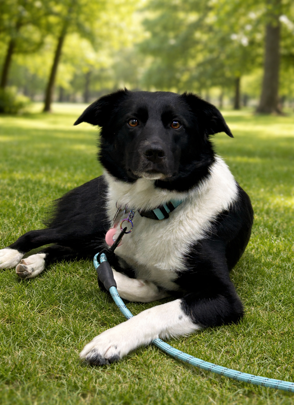 On leash, Mishka is generally easy to walk. She gets excited by squirrels and rabbits and may pull if she sees them, but she responds well to guidance and is otherwise very manageable.  Her name recall is improving, but she could be a flight risk in a new and unfamiliar environment. We recommend the use of a GPS tracker (Apple AirTag or similar) on her collar until she fully bonds with her forever family.