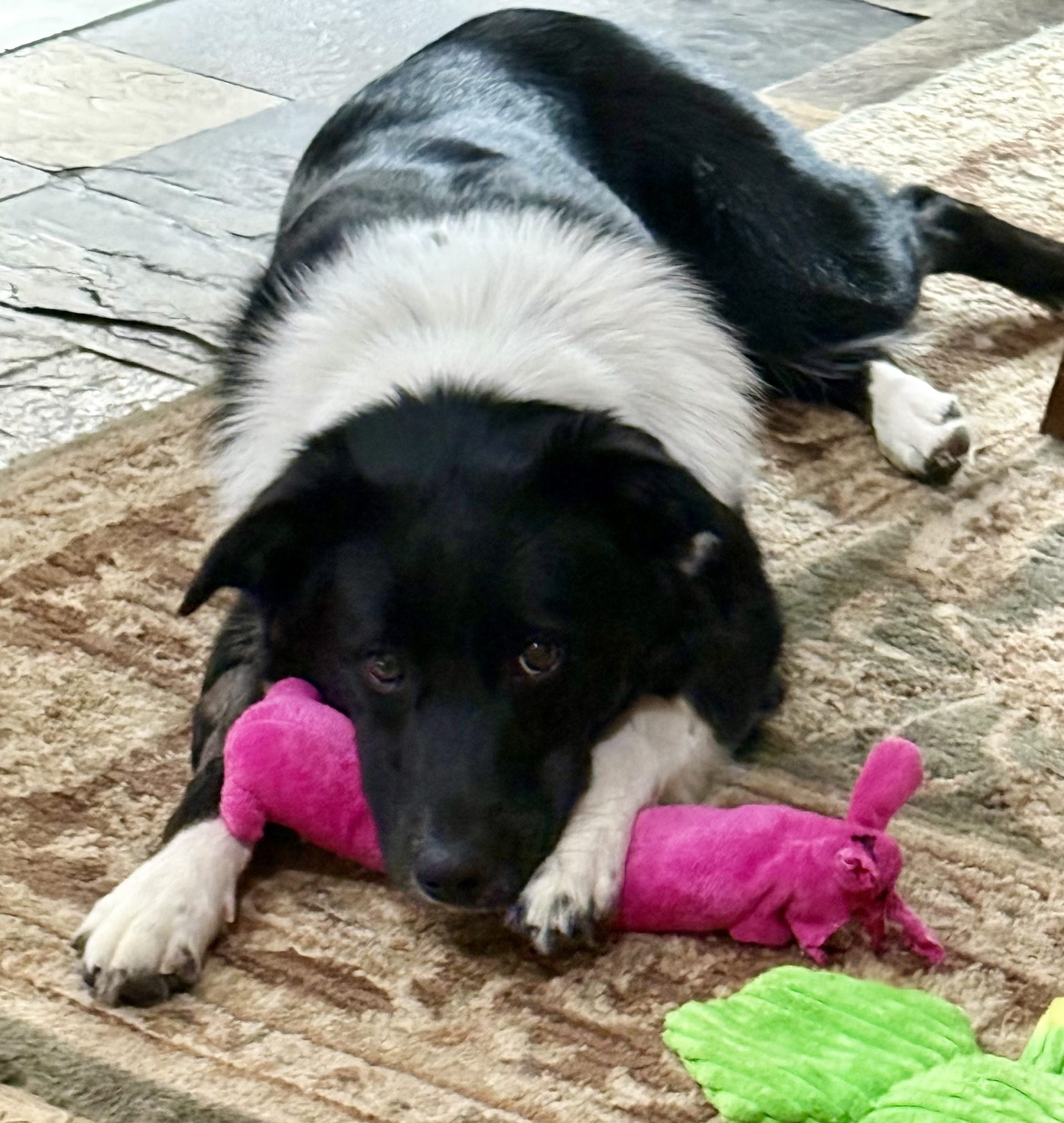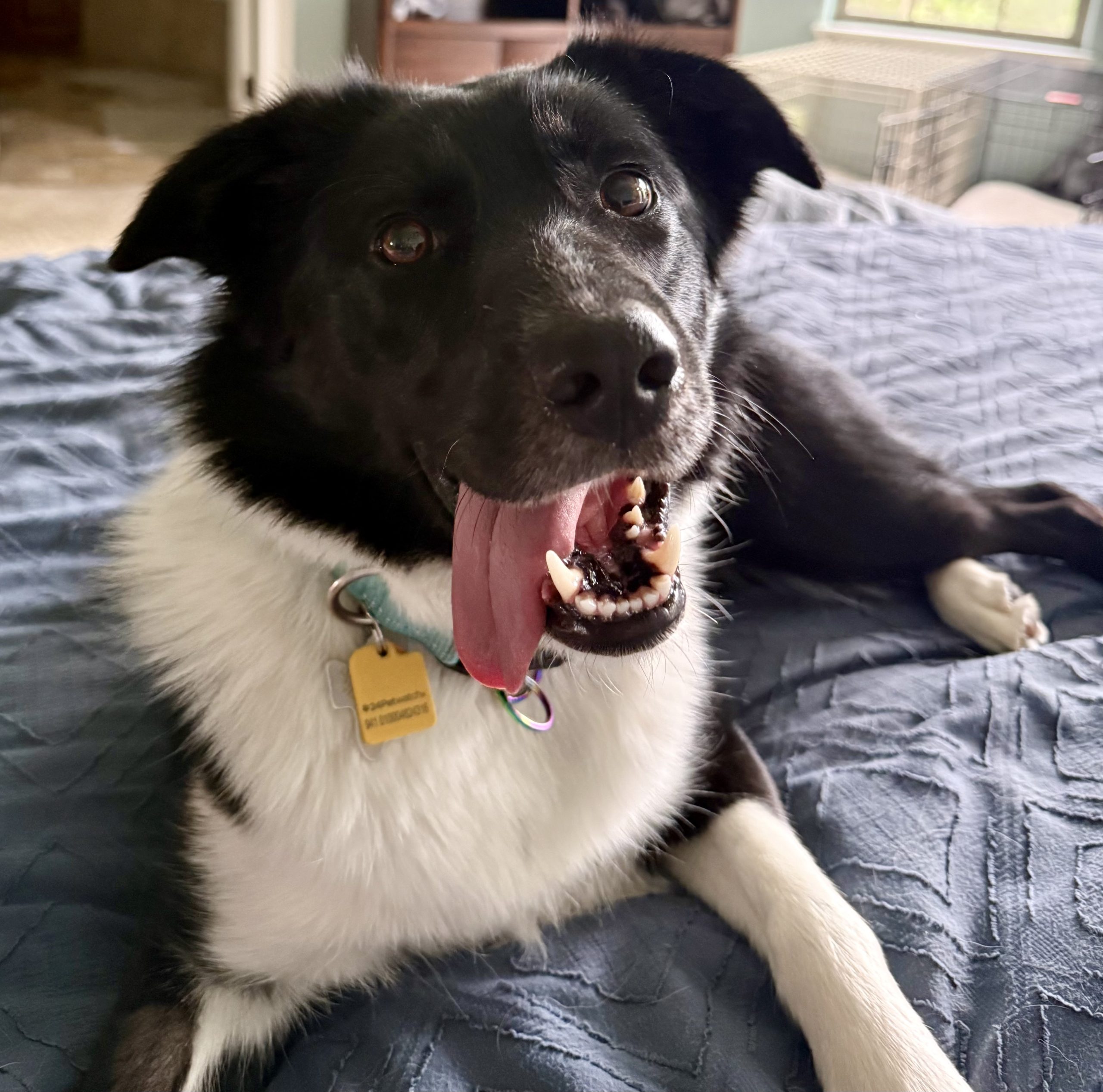 Mishka has excellent manners. She is house-trained and communicates clearly and politely when she needs to go outside. She does not counter surf and has not been destructive. Mishka is highly intelligent and has quickly learned the routine in her foster home. She is food-motivated, eager to please, and wiggles with delight when told what a good, smart pup she is. Mishka absolutely soaks up affection and praise. She is happiest when she can be close to her people – very much a velcro dog.