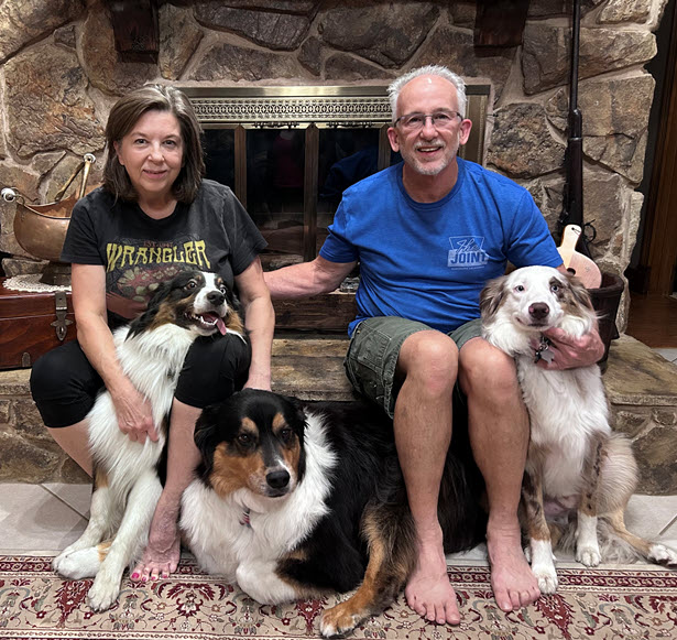 Onyx (L) has been adopted by his foster home and alumni family, the Pearsons. He will be their 4th STAR dog and joins Ringo #2066, Bigfoot #1170 and Spencer #1196. Thank you, Porter family for coming back to STAR to adopt an Aussie and all you do to support STAR.
