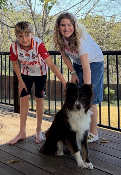 Reddington is a higher energy 2 1/2-year-old red tri male Aussie, who enjoys loving and attention, and returns it many times. He is a happy, Velcro boy who follows his person around, and interacts well with other family members.  He’s a little smaller at 42lbs and is smart, easy to train, and trusting.